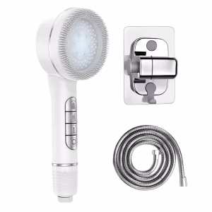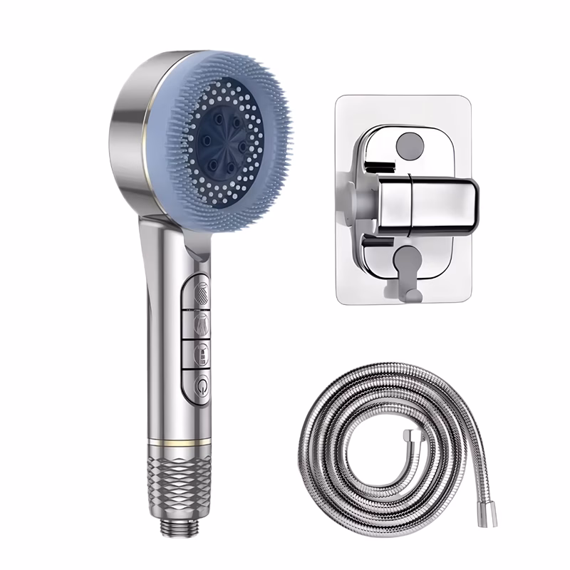 De siliconen borstel verwijderde gemakkelijk zeepresten. Mijn douches voelen nu als een dagelijkse traktatie. De insta-stopknop is super handig.