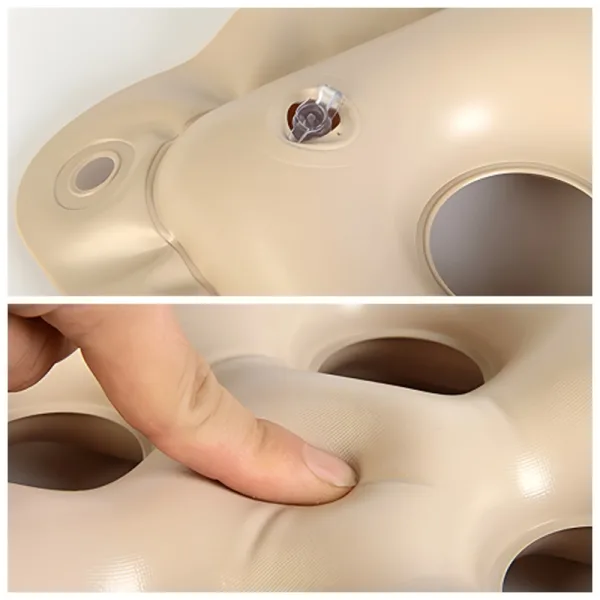 Het kussen geeft me precies de juiste ondersteuning. Het is heel eenvoudig op te blazen en ik vind het fijn dat ik het kan opvouwen wanneer dat nodig is.