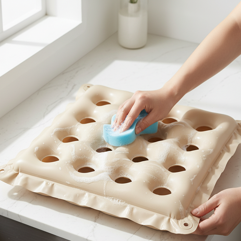 Ik gebruik dit op mijn werkstoel en ik voel me zoveel beter na lange gesprekken. Schoonmaken kost maar een minuutje, wat ik erg fijn vind.