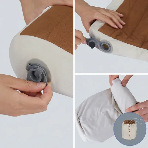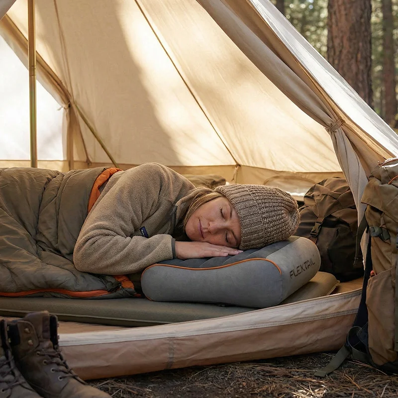 Ik vind het geweldig hoe dit kussen zo klein in te pakken is voor kamperen. Super makkelijk op te blazen en de ondersteuning voor mijn nek maakte buiten slapen veel comfortabeler.