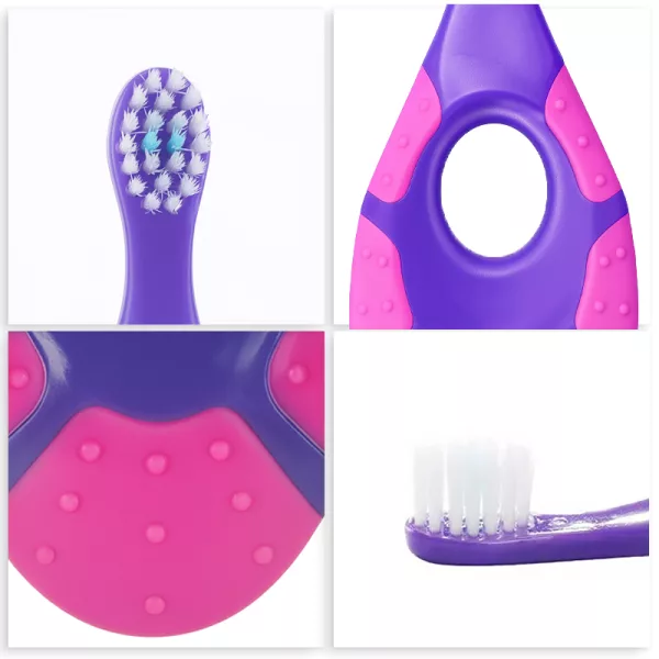 Mijn zoon wil nu echt zijn tanden poetsen omdat hij dol is op de felle kleuren. De zachte borstelharen zijn geweldig voor zijn gevoelige tandvlees!