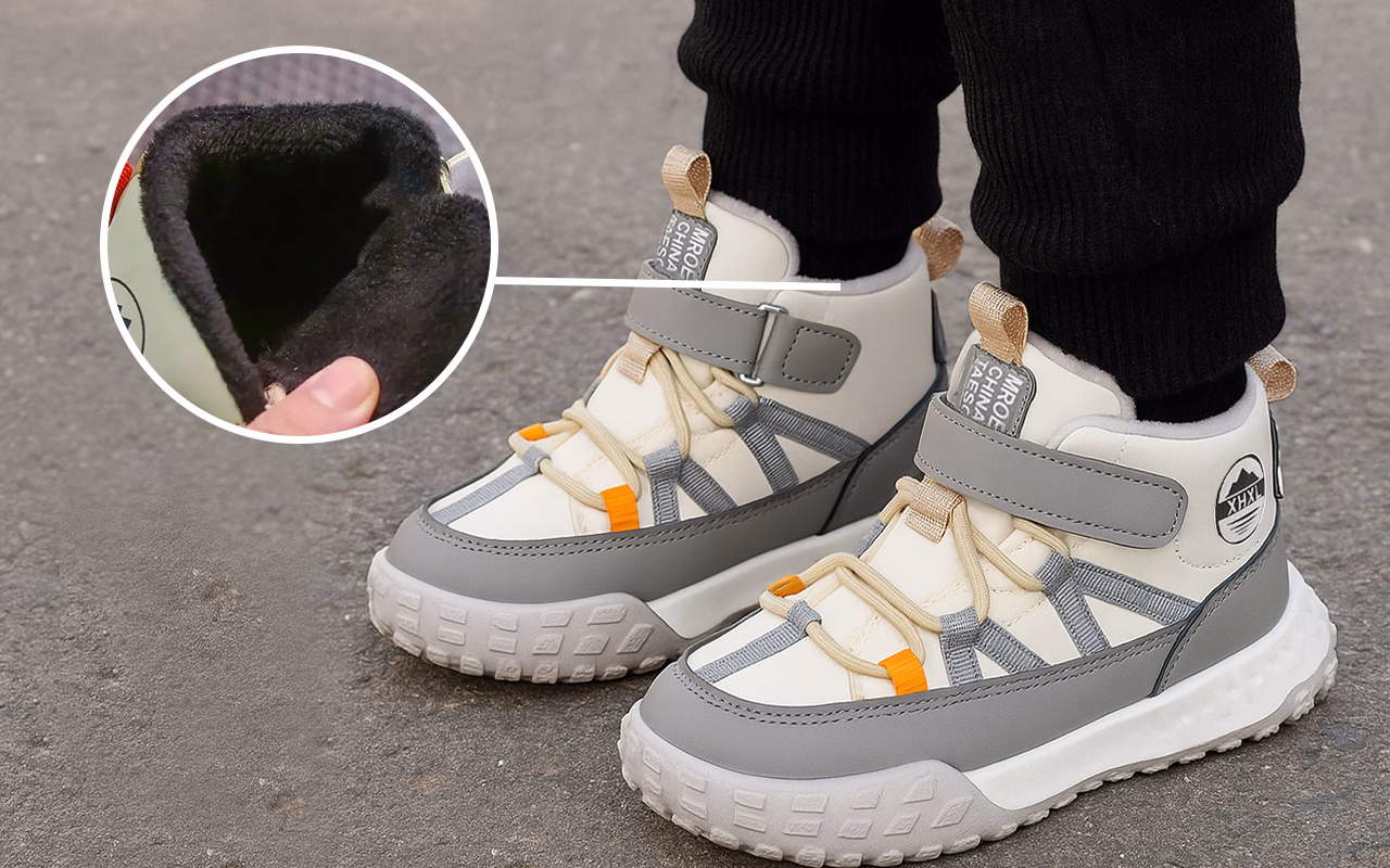 Pluche voering houdt warmte binnen en blokkeert winterse kou. Kleine voeten blijven de hele dag beschermd tegen ijzige stoepen.