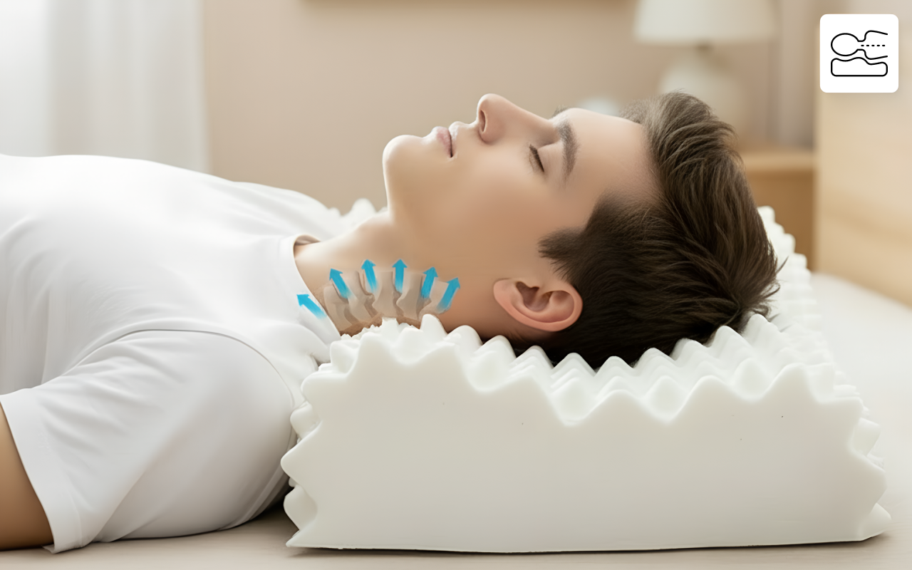 Vormt zich op natuurlijke wijze naar de contouren van je hoofd en nek voor een betere uitlijning. Ervaar minder druk, wat helpt om stijfheid gedurende de nacht te verminderen.