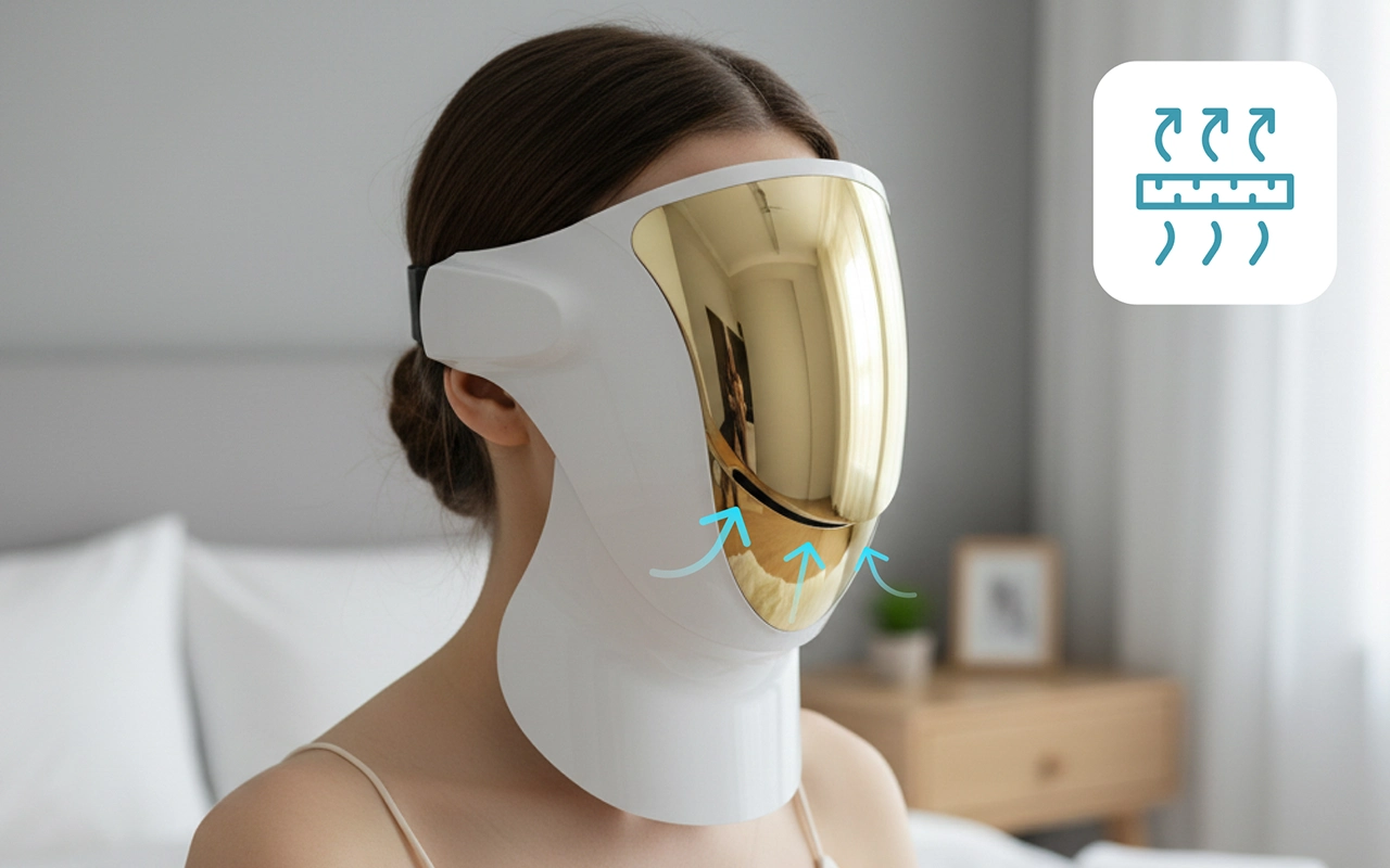 Transparant venster en ademend ontwerp laten natuurlijke ademhaling toe. Zachte siliconen bandjes maken elke behandeling licht en aangenaam.