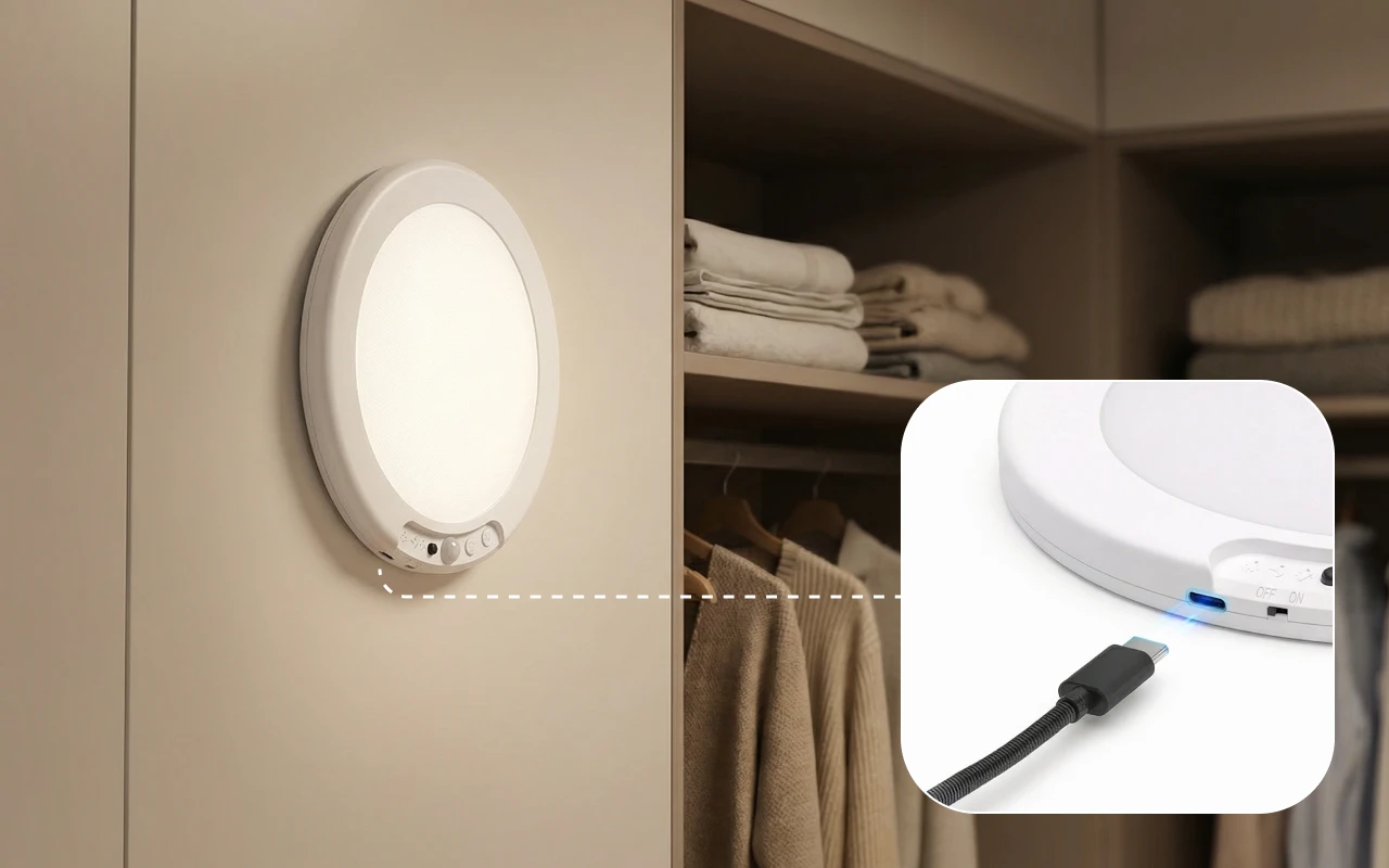 Laad de Ortorex plafondlamp snel op met een USB Type-C-kabel. Een volledige lading biedt wekenlange betrouwbare verlichting.