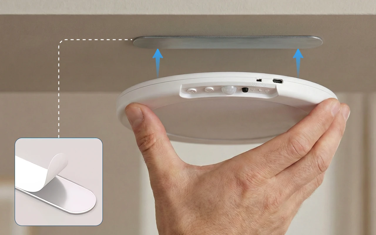 Monteer de Ortorex plafondlamp in seconden met krachtige magneten. Er zijn geen gereedschap of ingewikkelde instructies nodig voor de installatie.