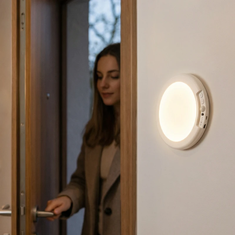 Nooit meer zoeken naar een schakelaar! Lamp detecteert wanneer ik binnenkom en gaat meteen aan. Het opladen via USB ging ook heel snel.