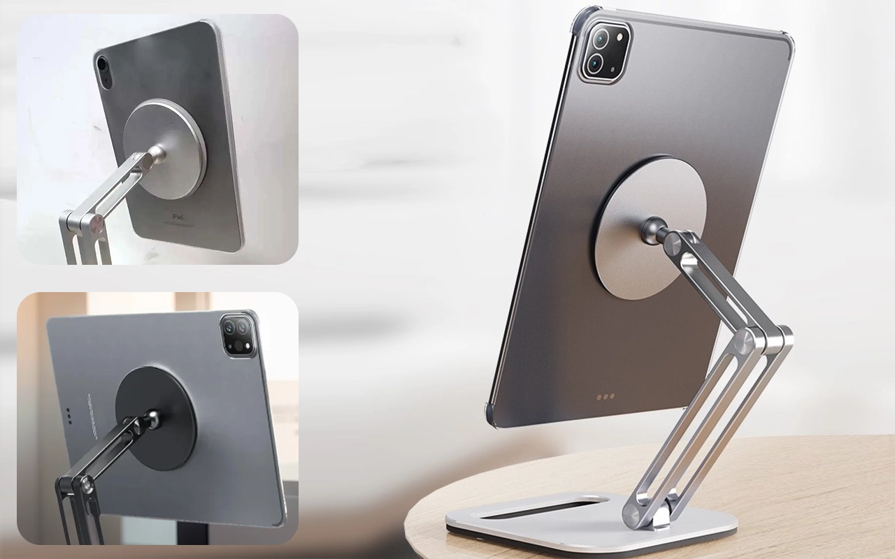 Ortorex houder houdt schermen stabiel, voorkomt vallen en maakt je handen vrij. Het metalen frame ondersteunt veel merken en maten. Het slanke ontwerp past netjes op elke tafel of werkbureau.
