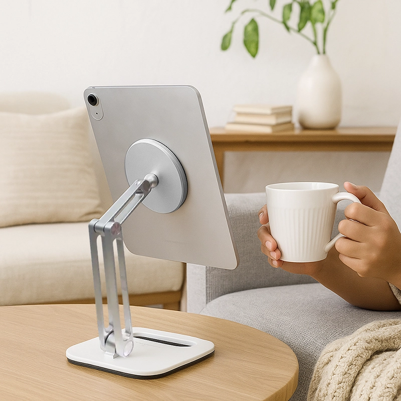 Deze standaard houdt mijn iPad stabiel tijdens filmmarathons en tekenen. Helemaal stevig, wiebelt of glijdt nooit en past perfect op mijn bureau thuis.