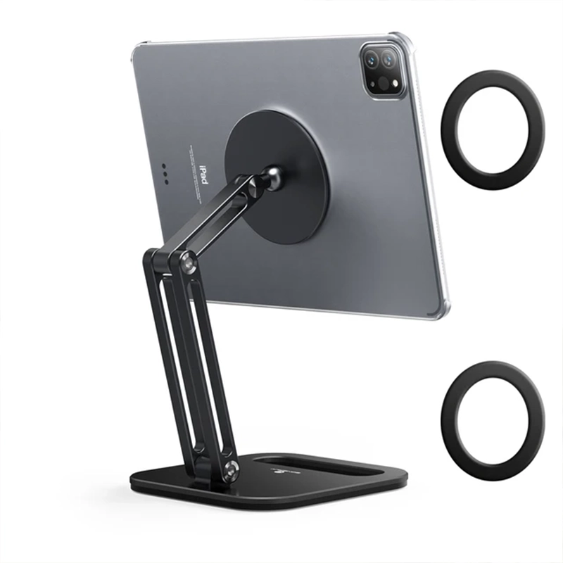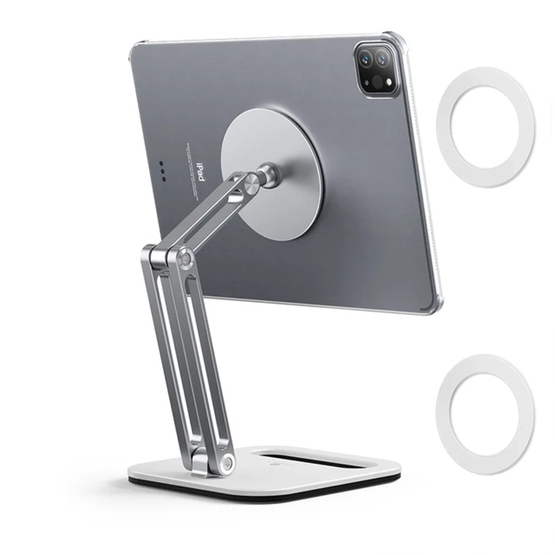 Ortorex houder houdt schermen stabiel, voorkomt vallen en maakt je handen vrij. Het metalen frame ondersteunt veel merken en maten. Het slanke ontwerp past netjes op elke tafel of werkbureau.