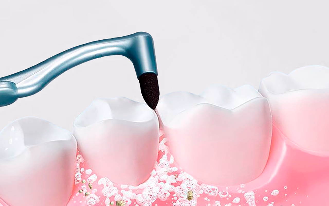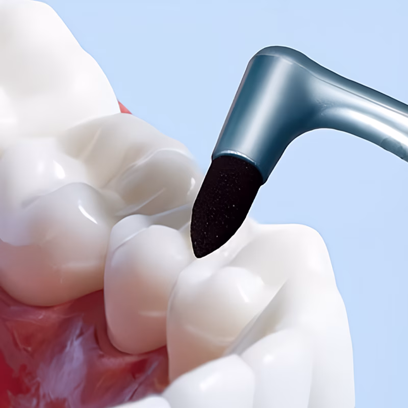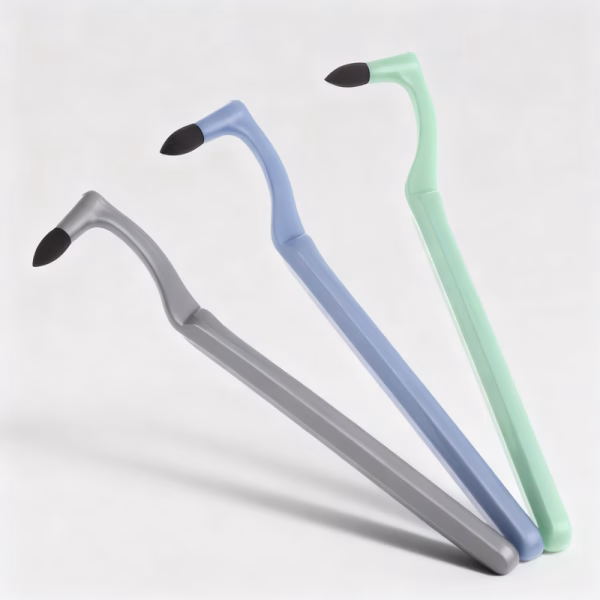 Speciale vorm glijdt moeiteloos rond beugels en draden. Het houdt orthodontisch werk schoon en veroorzaakt geen ongemak.