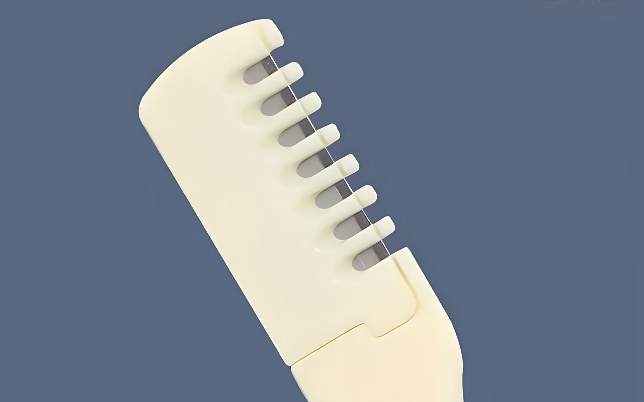 Afgeronde punten helpen snijwondjes te voorkomen tijdens het trimmen. De beschermkam beschermt de gevoelige binnenhuid tegen per ongeluk snijden.