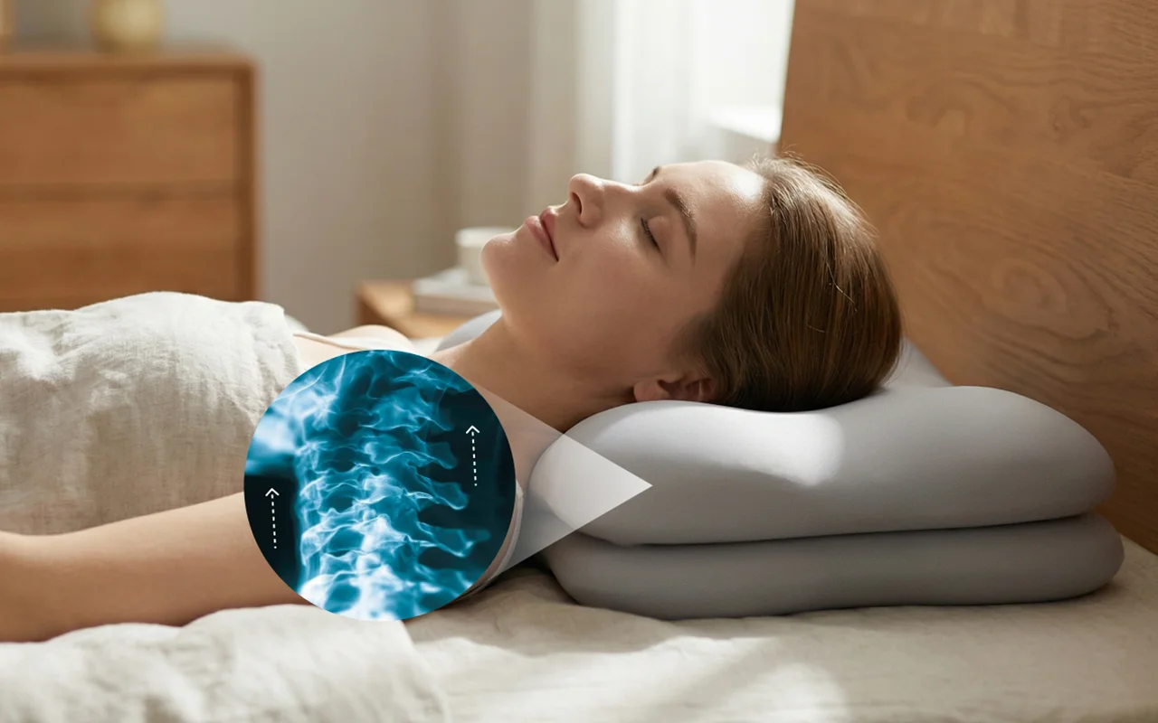 Ik werd vroeger wakker met hoofdpijn, maar dit kussen houdt mijn hoofd recht en mijn lichaam in één lijn, waardoor de ochtenden veel makkelijker zijn.