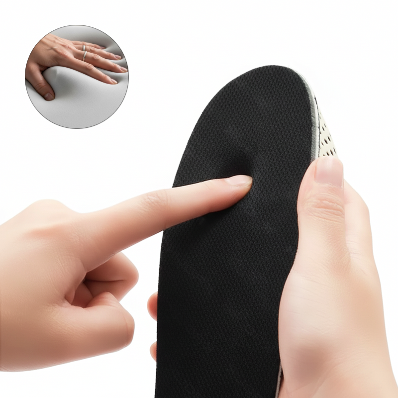 De zachtheid verraste me. Mijn schoenen zitten comfortabeler en ik denk niet meer aan zere voeten. De verborgen verhoging helpt echt.