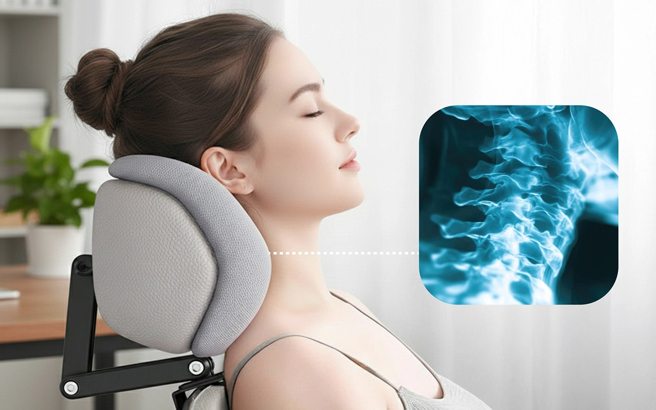 Verminder spanning in je schouders door je hoofd zachtjes te ondersteunen. Deze steun verlicht de druk en voorkomt ongemak door een slechte zithouding.