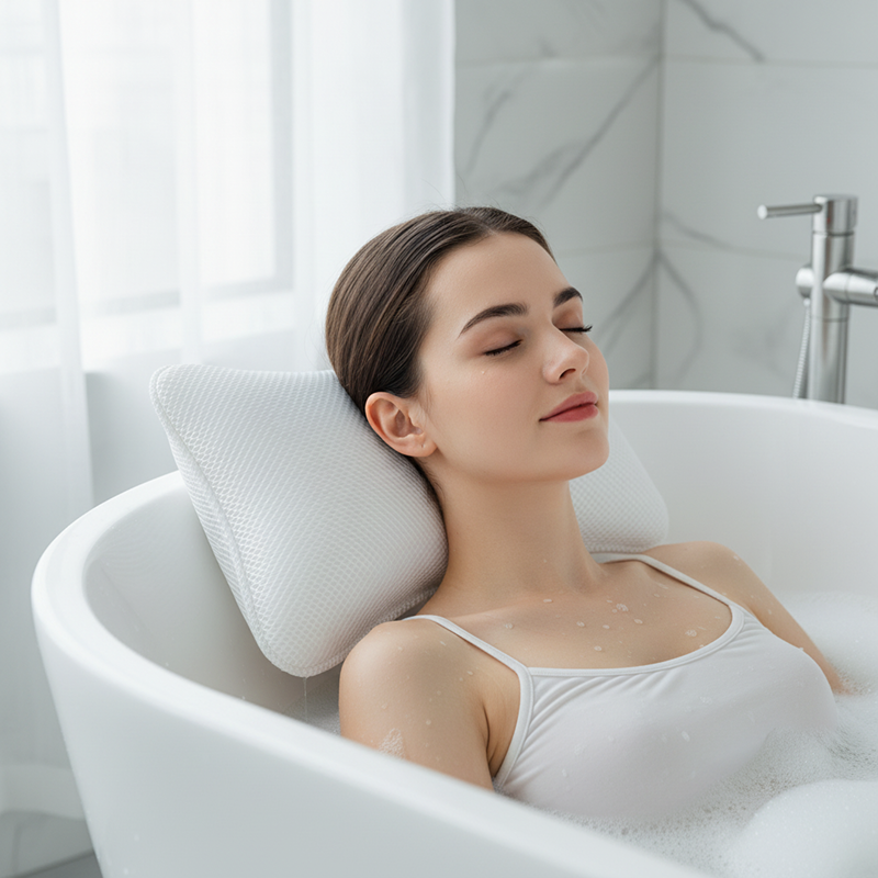 De mesh hoofdsteun maakte mijn badtijd gezellig en ontspannen. Het is zo zacht, ik zou de hele nacht in bad kunnen blijven.