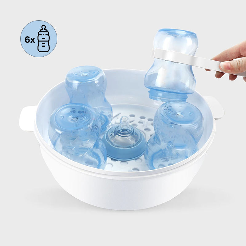 Zes flessen passen samen voor één eenvoudige stoomcyclus. Ideaal voor drukke dagen of gezinnen met meer dan één kind.