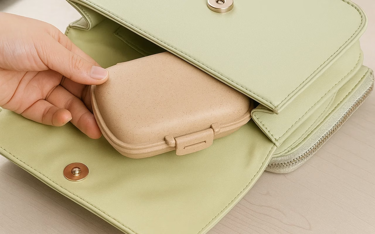 De Ortorex pillendoos neemt weinig ruimte in beslag, waardoor hij perfect is voor op reis. Je kunt je medicatie overal mee naartoe nemen.