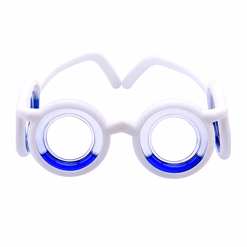 Geniet van een rustige reis na slechts tien minuten. Deze bril verlicht snel misselijkheid tijdens beweging.