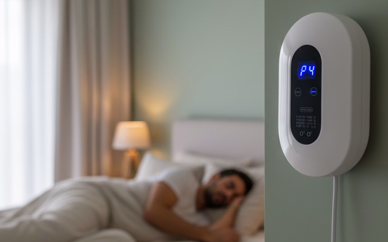 Ortorex-luchtreiniger werkt zachtjes voor een rustige slaap elke nacht. Geen extra geluid, alleen een kalme, frisse omgeving terwijl u rust.