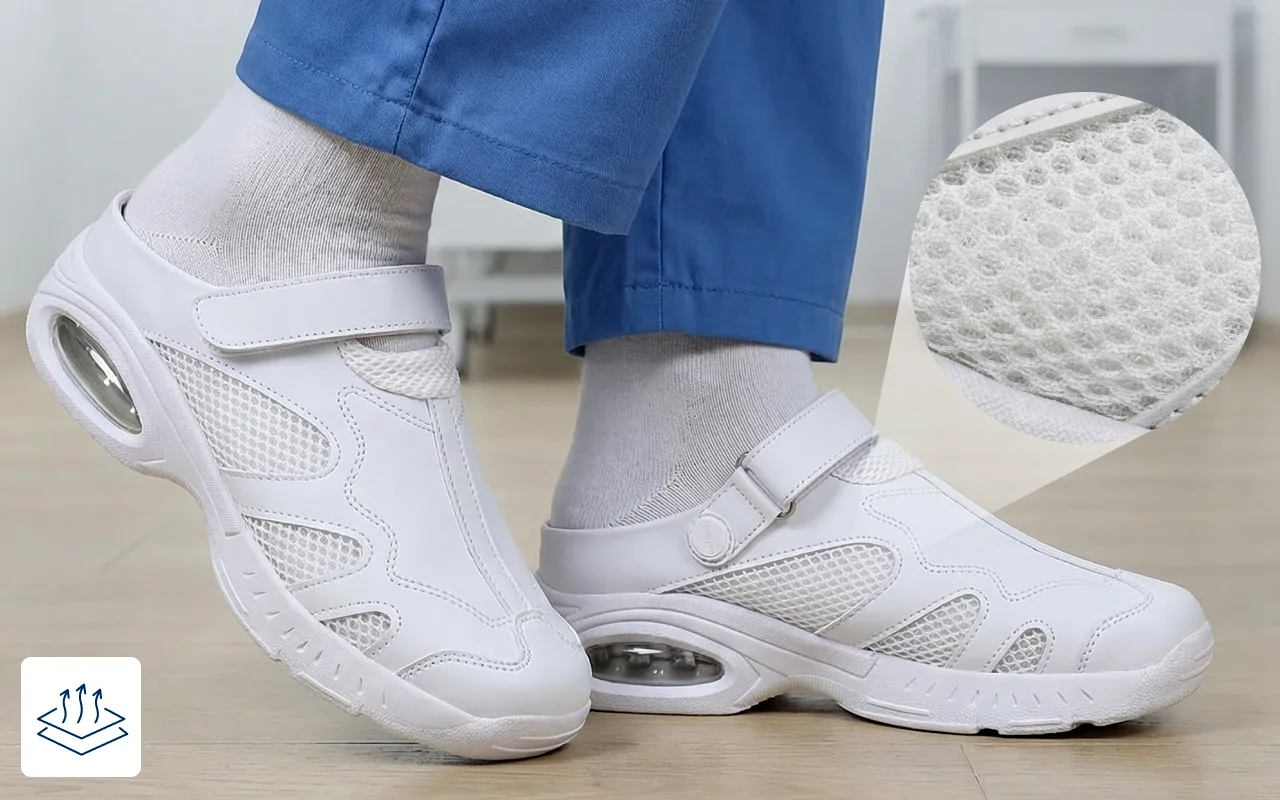 Zachte, lucht-gevoerde inlegzolen verminderen de impact en voorkomen pijnlijke voeten. Je voelt je verfrist, zelfs na urenlang lopen of staan.