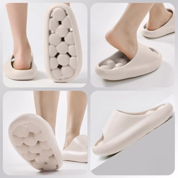 Ik vind het lekker hoe de bobbeltjes onder mijn hielen aanvoelen als ik loop. Ze houden me veilig en comfortabel, zelfs op gladde vloeren.