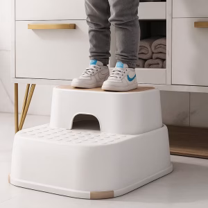 Twee niveaus stellen kleintjes in staat om gemakkelijk hogere oppervlakken te bereiken. Taken zoals handen wassen of tandenpoetsen worden moeiteloos.