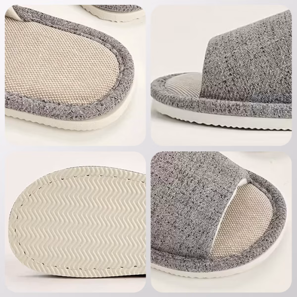 Katoen-linnenmix laat lucht circuleren en voorkomt zweterige voetzolen. Geniet van zachte stof die de huid de hele dag ontspannen houdt.