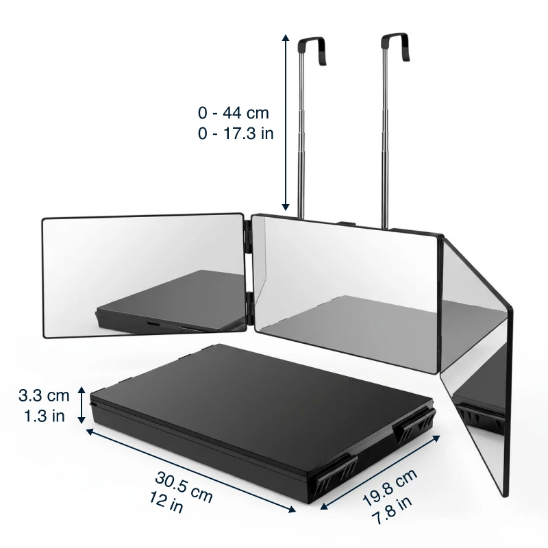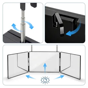 Ortorex driespiegels lossen dagelijkse verzorgingsproblemen snel en eenvoudig op. Pas de hoogte aan voor volledig zicht tijdens het stylen of scheren. Vouw hem plat om in tassen en lades te passen voor onderweg. Vind elke dag een heldere weerspiegeling voor het knippen, make-up of huidverzorging.