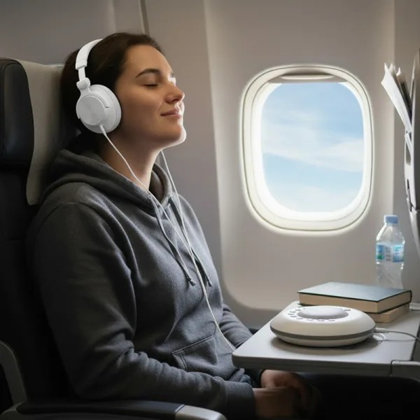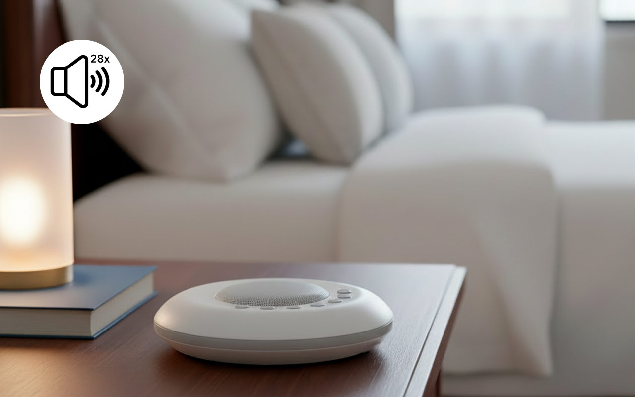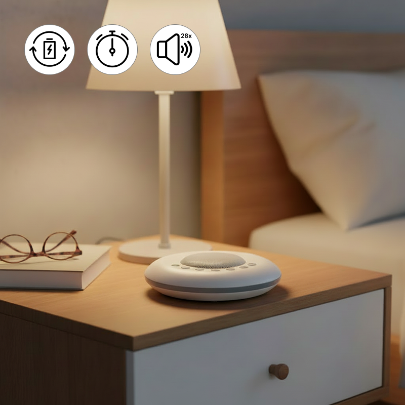 Ik werk nachtdiensten en slaap overdag. De golf- en ventilatorgeluiden dempen het verkeer, en het compacte formaat past makkelijk in mijn rugzak.