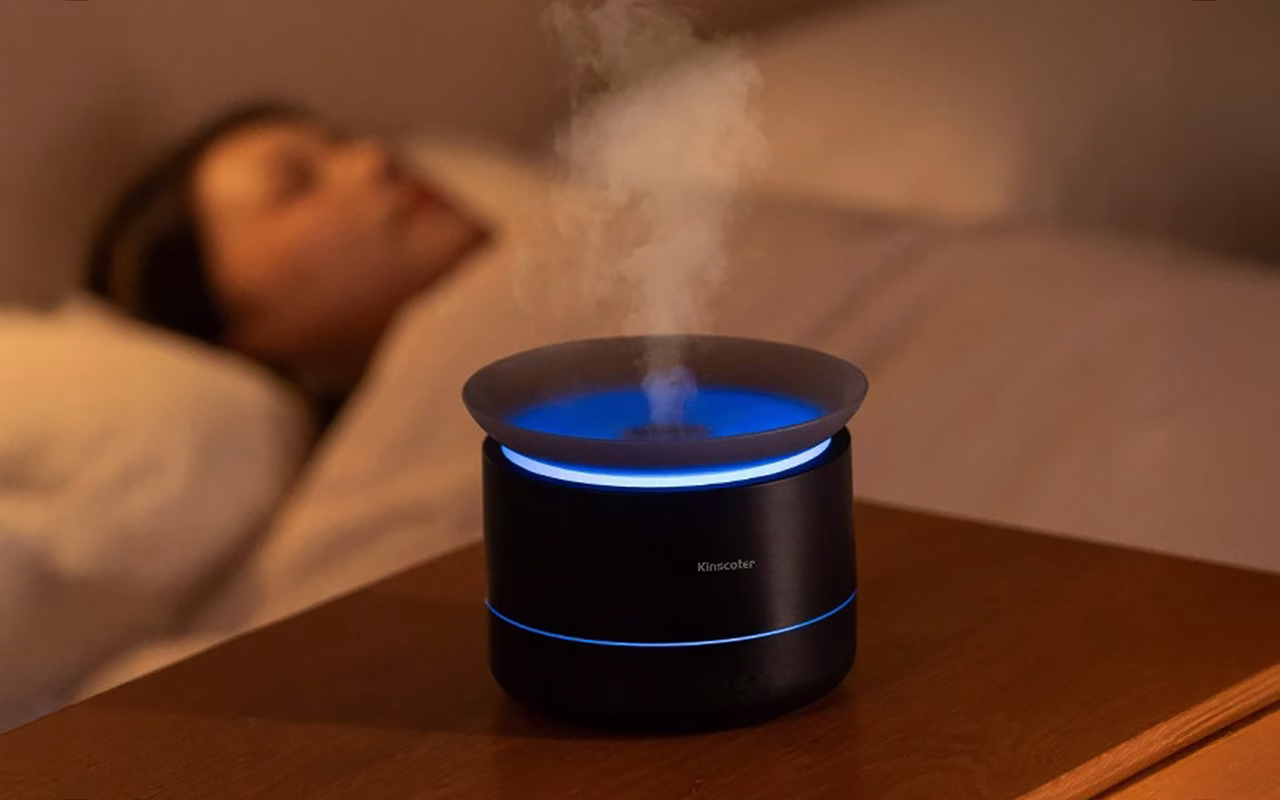 Deze luchtbevochtiger helpt mijn neus echt ’s nachts! De nevel houdt alles comfortabel en het gloeiende licht ziet er magisch uit.