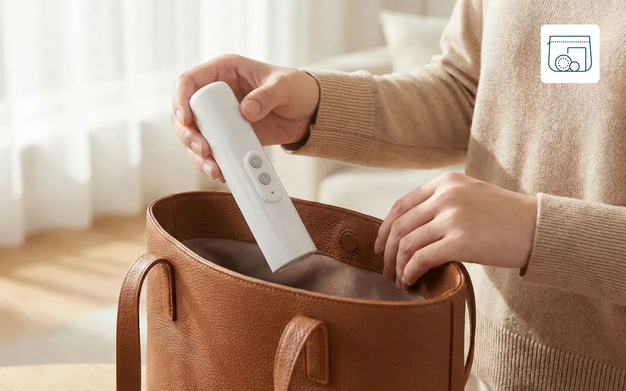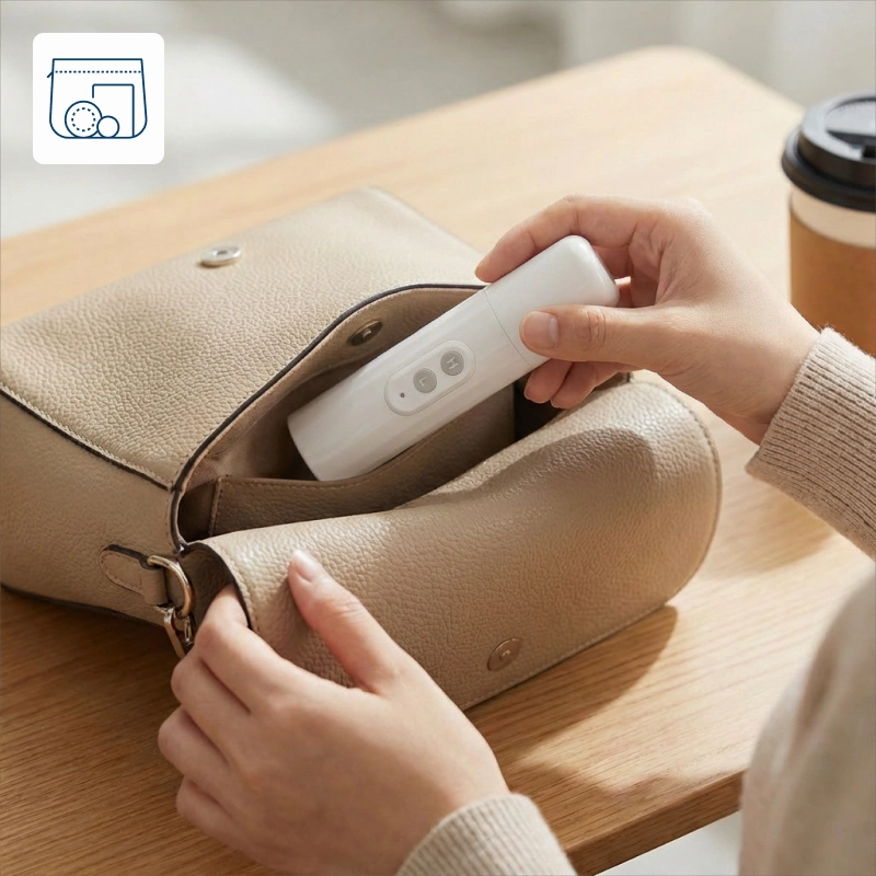 Slank en compact, het past gemakkelijk in elke handtas of rugzak. Geen zorgen meer over grote apparaten of extra ruimte.