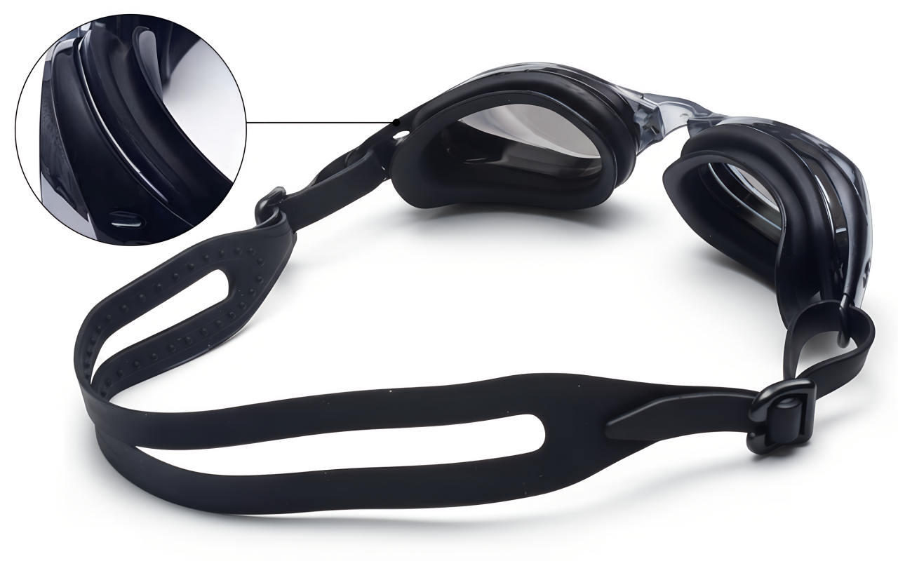 Zacht siliconen zorgt voor een zachte afdichting en eenvoudige verstelling. Geniet van elke baantje zonder druk of dat ze verschuiven rond je ogen.