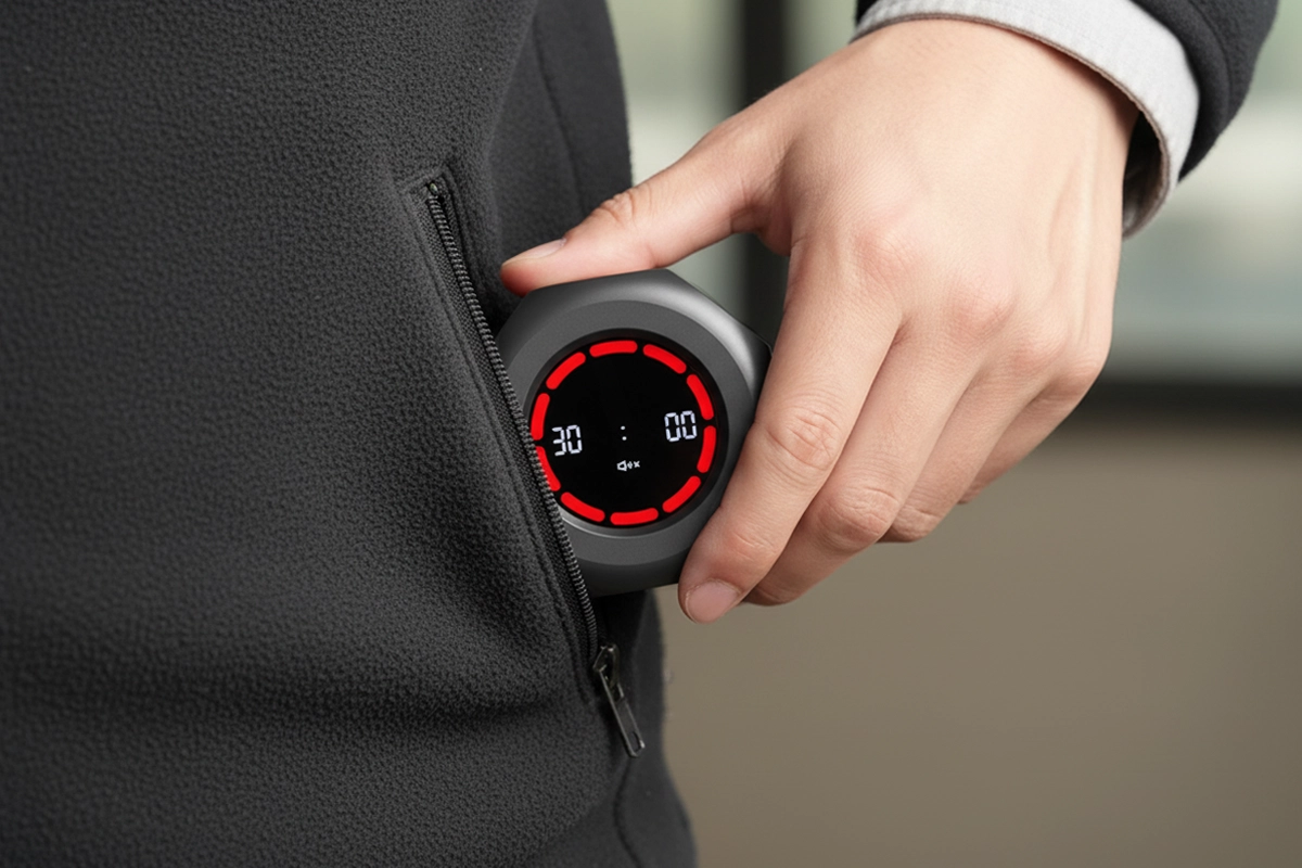 Klein en licht, past de Ortorex Timer in tassen of zakken. Een oplaadbare batterij houdt hem wekenlang klaar zonder moeite.