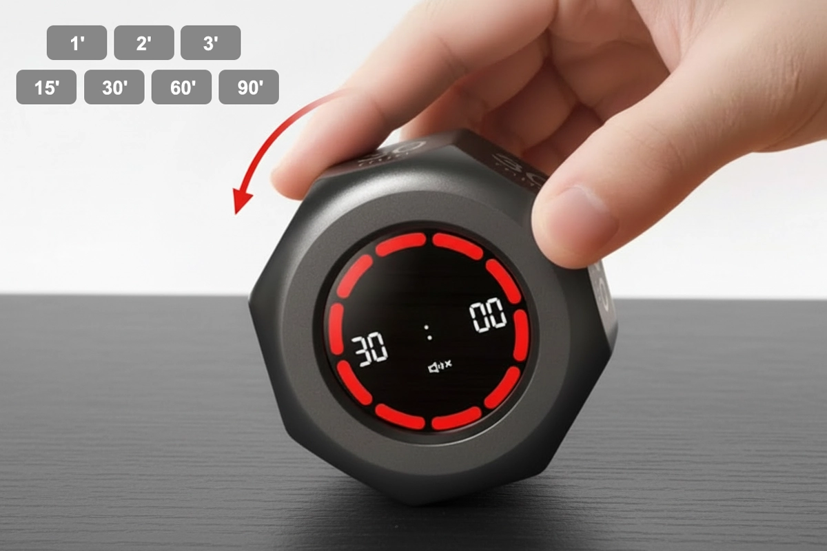 Het heldere display toont de resterende tijd duidelijk voor iedereen. Zie gemakkelijk de voortgang, of je nu werkt, leert of kookt.