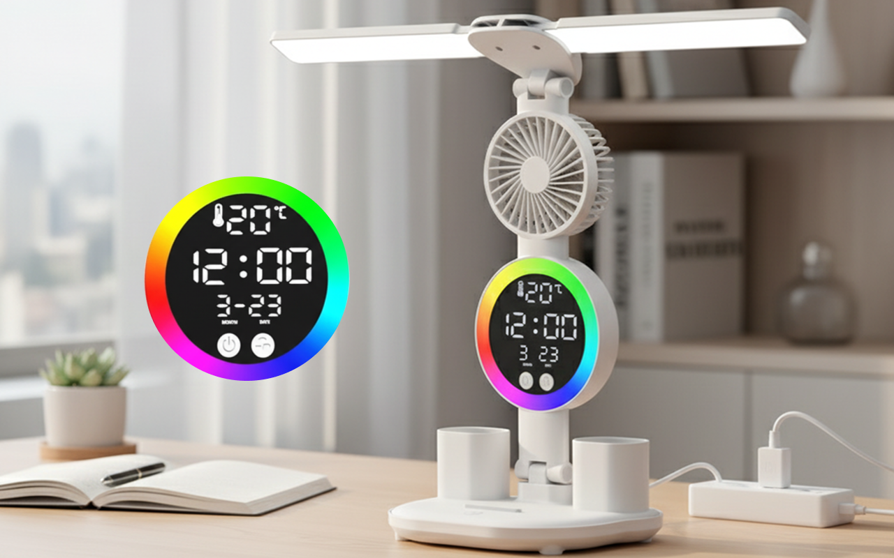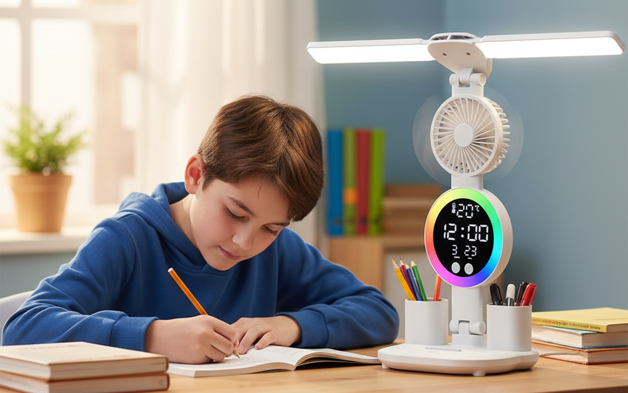 Deze lamp heeft mijn studeren veranderd. Het licht doet nooit pijn aan mijn ogen en de ventilator zorgt ervoor dat ik altijd koel blijf. Fijn dat ik de tijd makkelijk kan zien ook.