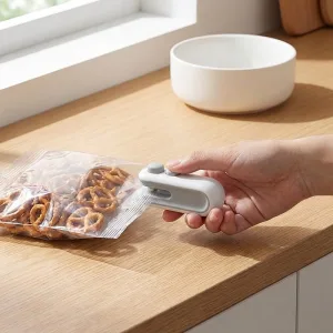 Geen verspild voedsel of slappe lekkernijen meer in huis. De Ortorex Mini Sealer maakt elke zak binnen enkele seconden luchtdicht, waardoor je geld bespaart en de versheid behoudt. Druk gewoon, glijd, en geniet elke keer van langer blijvende smaak. Het compacte ontwerp past gemakkelijk in elke keuken, lade of reistas.