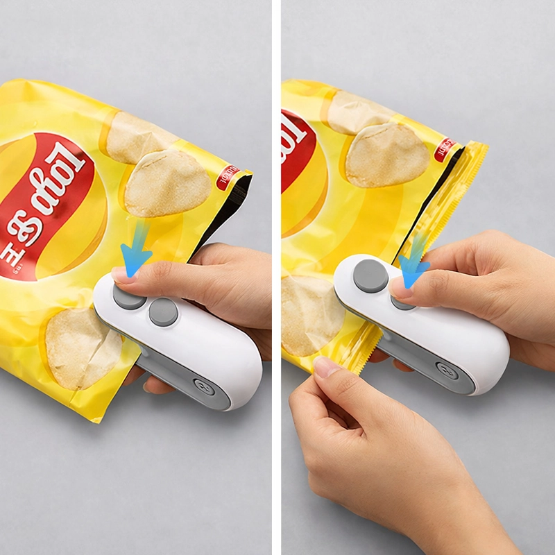 We nemen de mini-sealer mee naar picknicks. Hij is licht, past in de handtas van mijn vrouw en voorkomt dat overgebleven chips en koekjes overal uit de zak vallen.