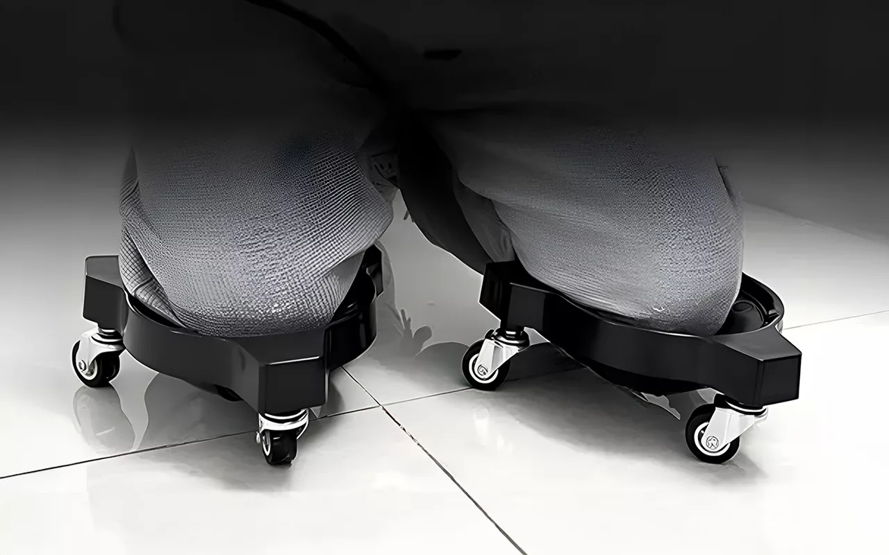 Rondrollen op de wielen maakt het schoonmaken van plinten zoveel makkelijker. Geen uitglijden, ze blijven op hun plek en mijn knieën zijn beschermd.