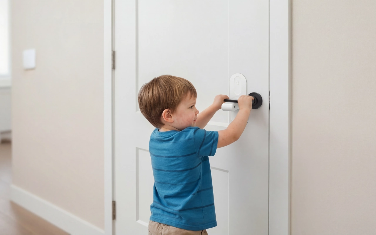 Mijn peuter trekt graag aan deurklinken, maar sinds dit slot kan hij niet meer naar buiten. Het is zo makkelijk voor volwassenen, maar lastig voor kinderen.