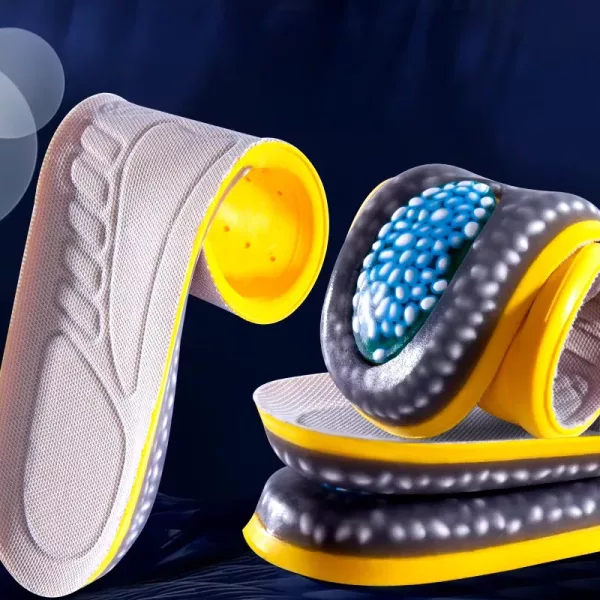 Gelaagde demping voelt geweldig onder de voeten. Mijn voeten zijn blijer en gezonder met deze ademende, schokabsorberende inlegzolen.