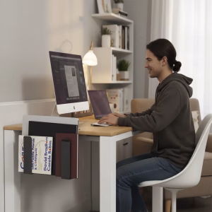 Verminder rommel snel met een slimme houder naast je bureau. Geniet van meer ruimte om te werken, typen of schrijven zonder afleiding.