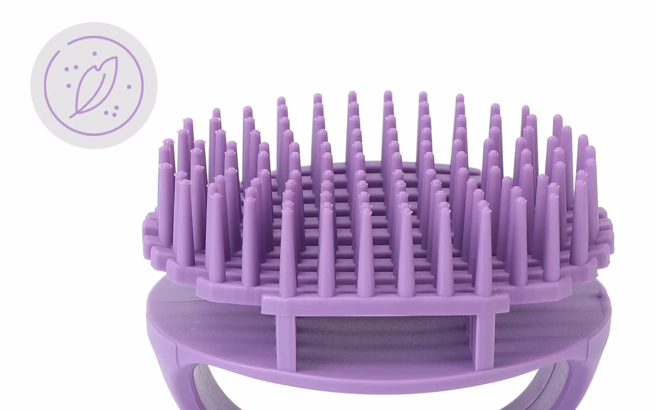 Zachte borstelharen verlichten spanning zonder de gevoelige huid te krabben. Elke wasbeurt wordt rustgevend en kalmerend voor je hoofd.