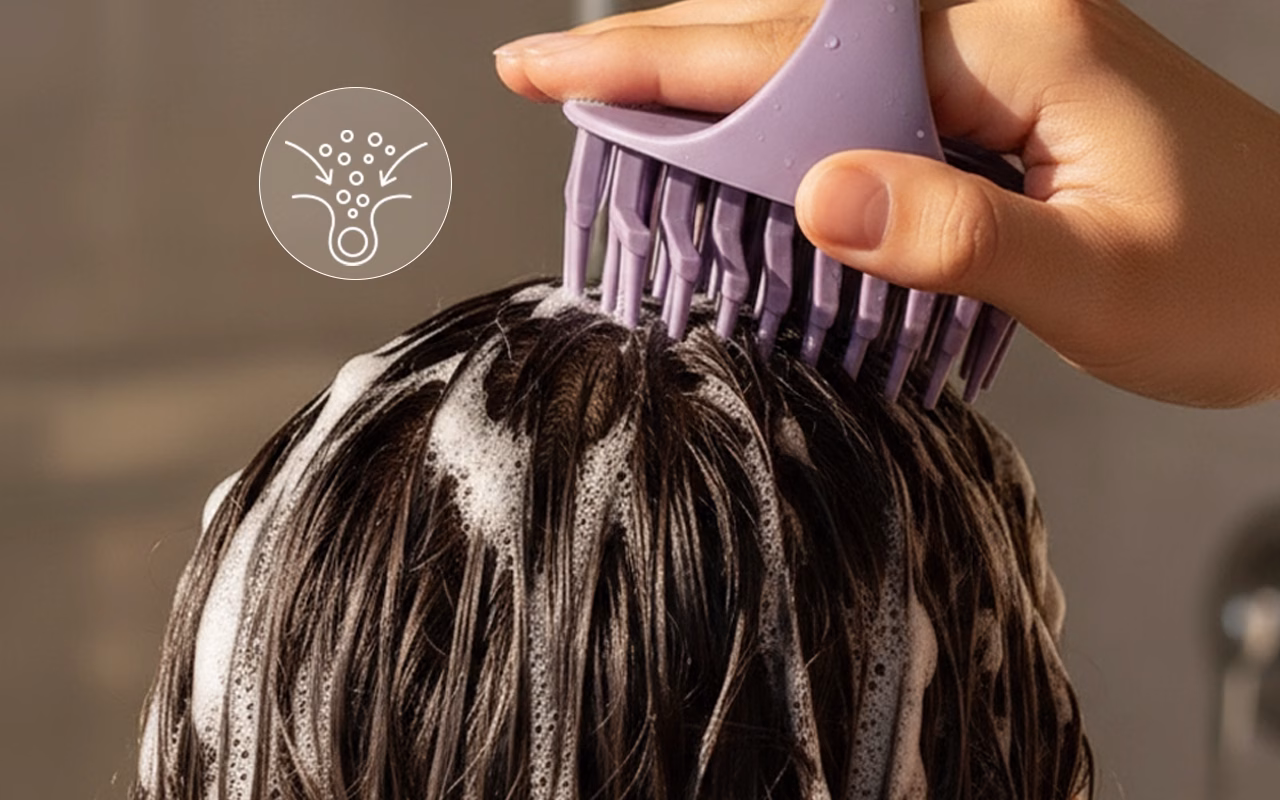 Bereik de haaraanzet en verwijder snel vuil bij elke wasbeurt. Je merkt al frisser haar na slechts een paar keer gebruik.