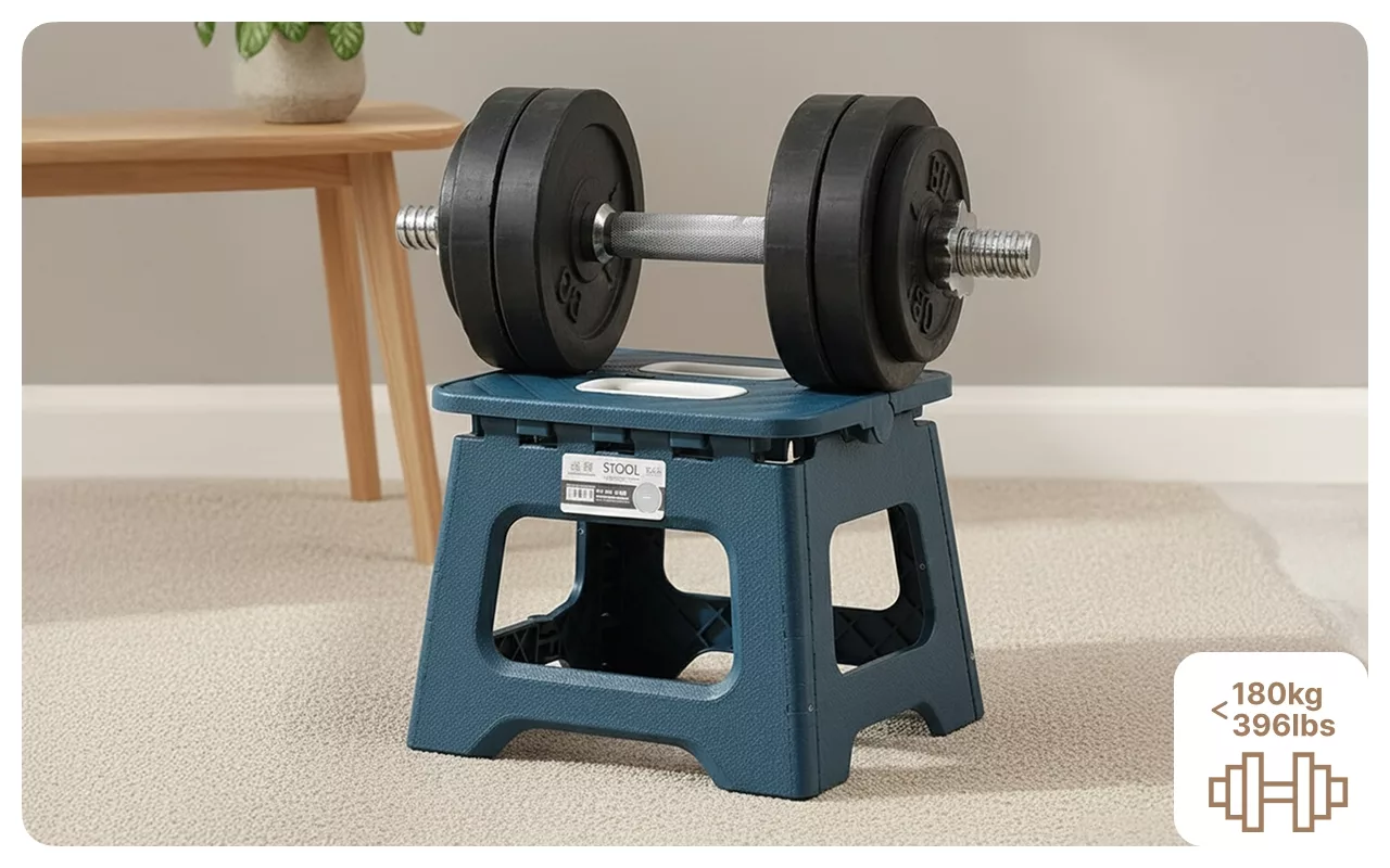 Deze opvouwbare kruk is sterk genoeg voor mijn man, die zwaar is, en toch superlicht. We gebruiken hem overal.