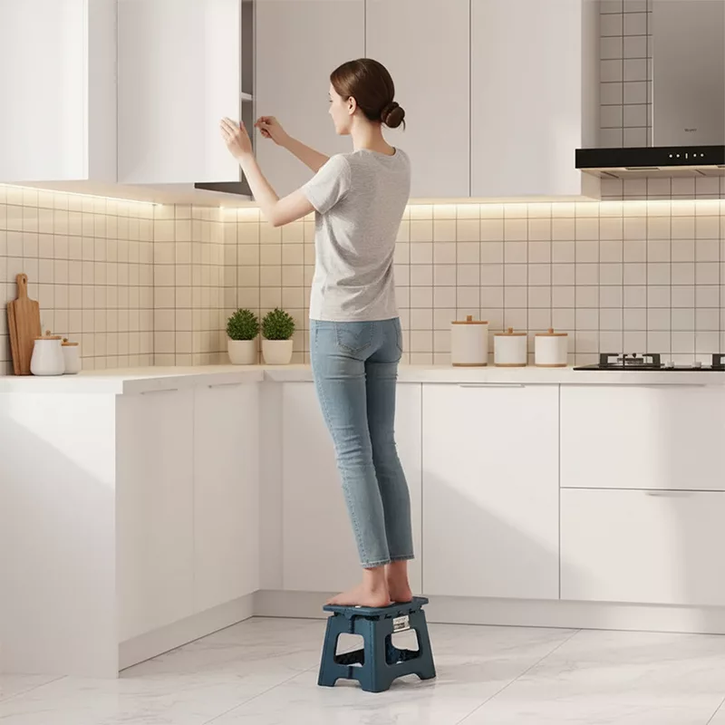 Het krukje is makkelijk mee te nemen en klapt snel open. Ik voel me altijd stabiel als ik erop sta om dingen uit mijn kast te pakken.