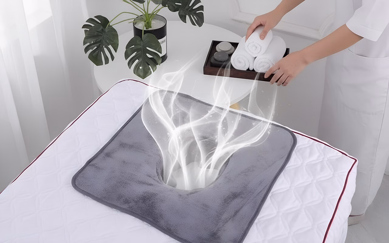 Cliënten ontspannen meer met deze doek op mijn tafel. Geen afdrukken van ruwe stof en dankzij de luchtstroom via de gezichtsuitsparing raken mensen niet benauwd.