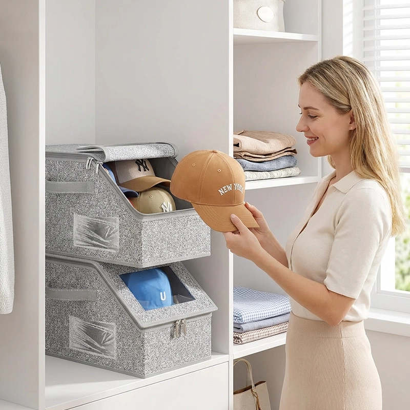 Ik vind het geweldig dat ik kan zien wat erin zit zonder iets te openen. Mijn hoeden blijven stofvrij en schoon, en ik heb extra ruimte voor meer spullen op de planken.