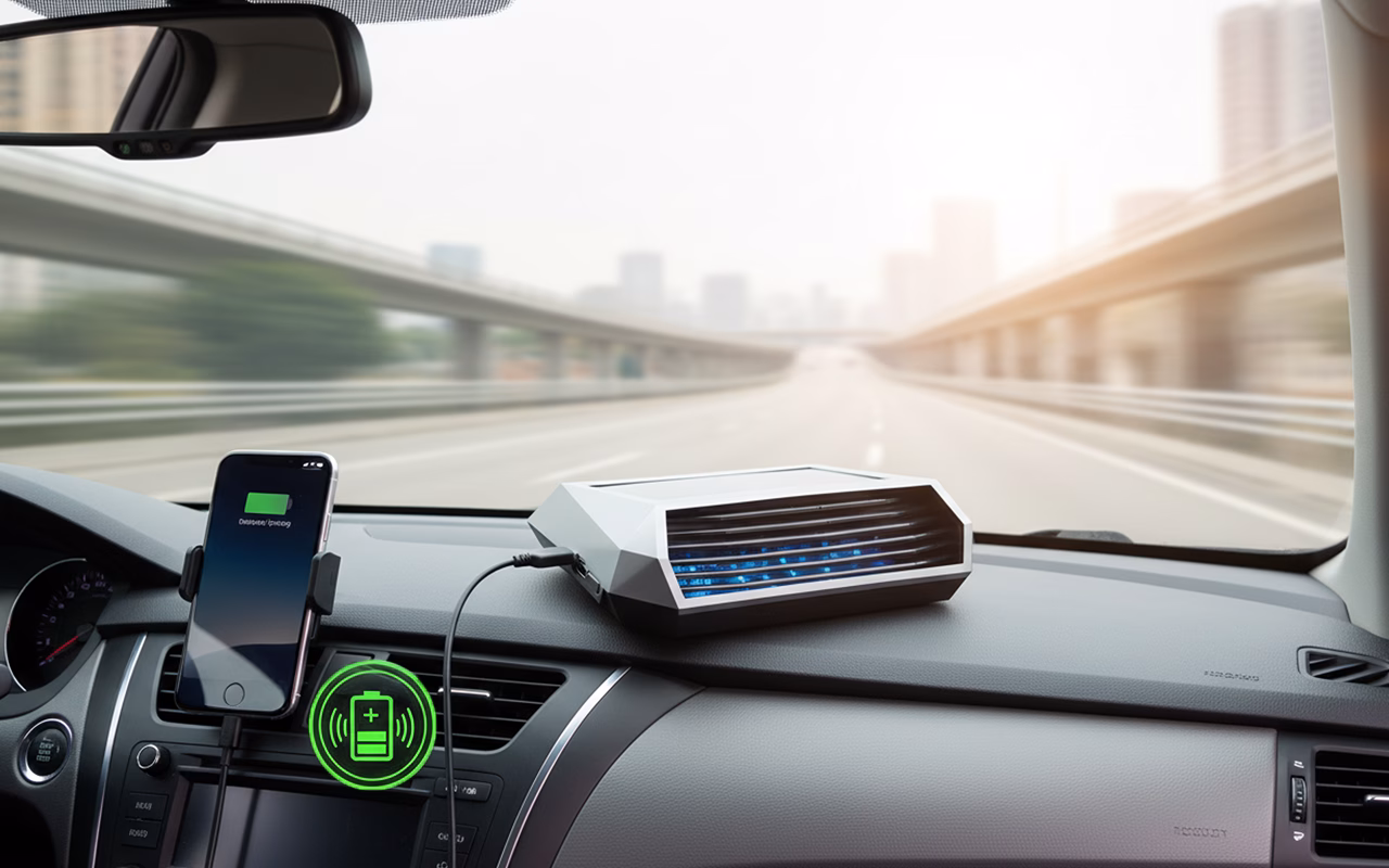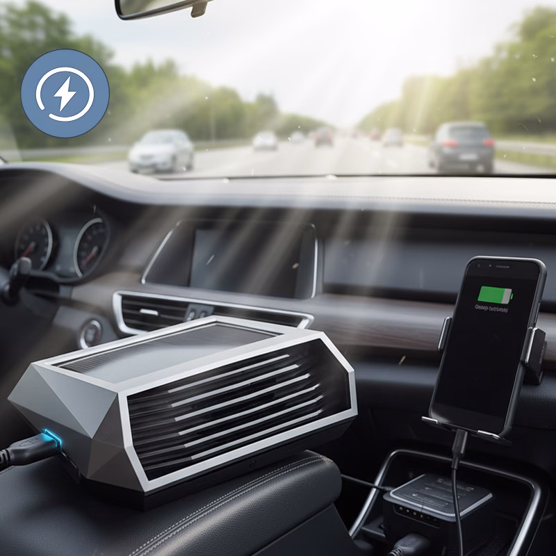Zonlicht laadt het apparaat op, waardoor kabels overbodig zijn. Extra USB-poorten helpen andere apparaten van stroom te voorzien tijdens het rijden.