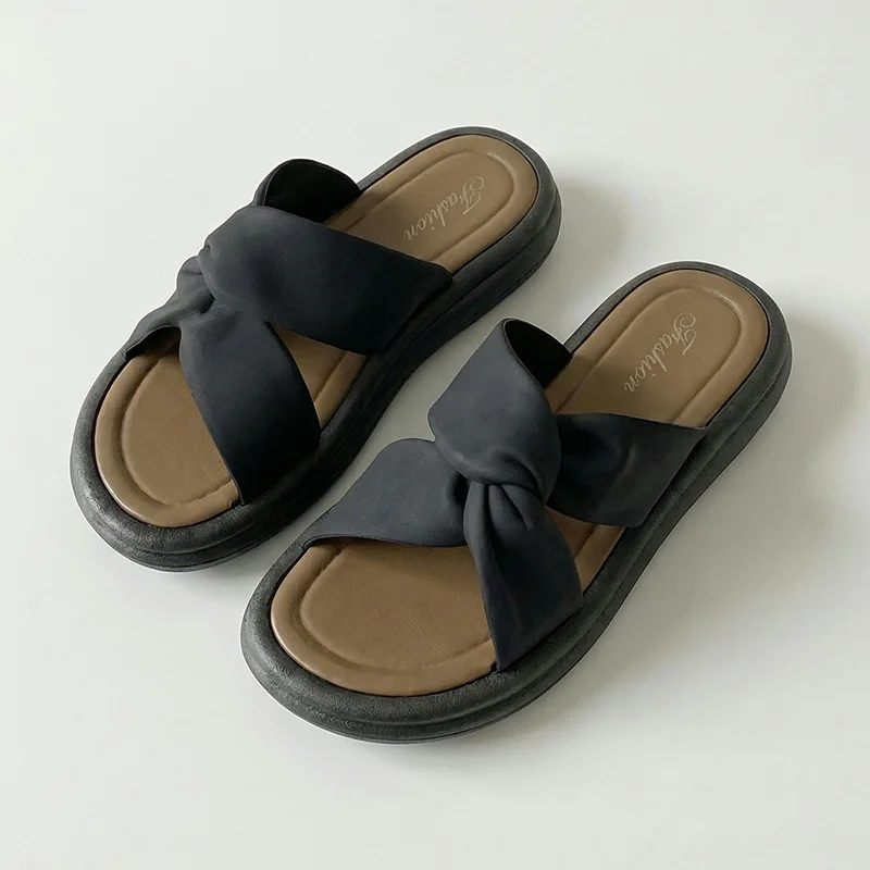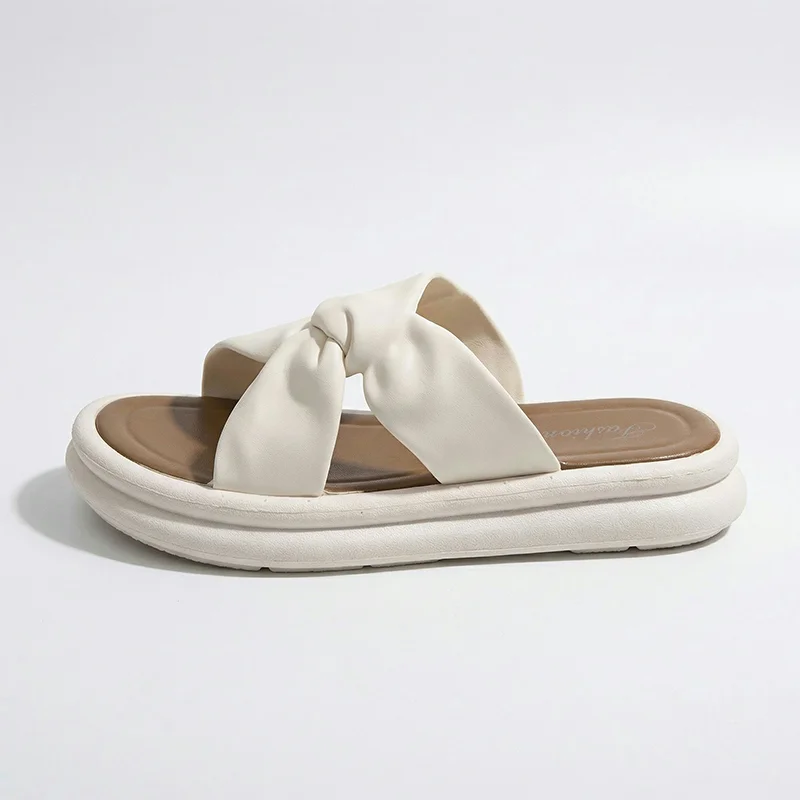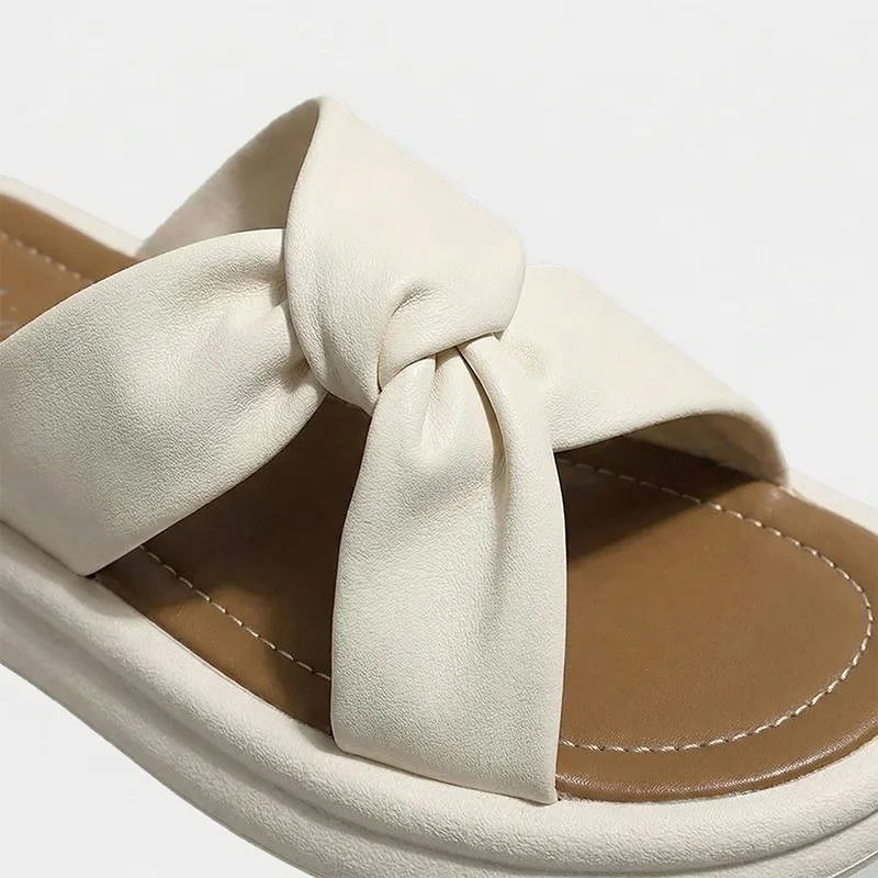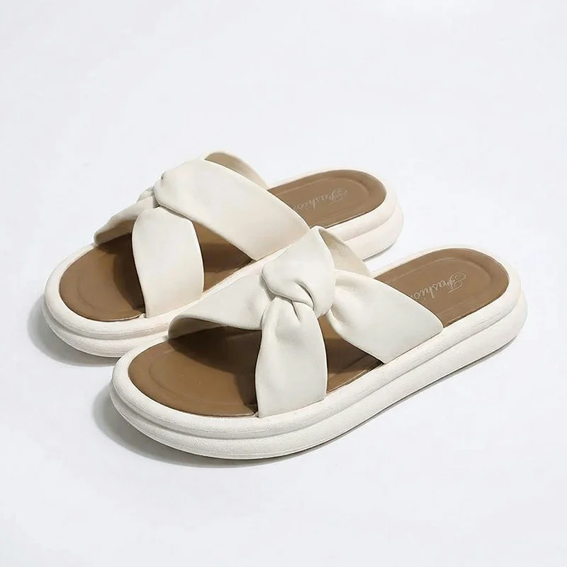 Ik heb gevoelige voeten, maar deze sandalen voelen zacht en ondersteunend. De bandjes snijden niet, en de geknoopte bovenkant laat zelfs simpele outfits verzorgd ogen.